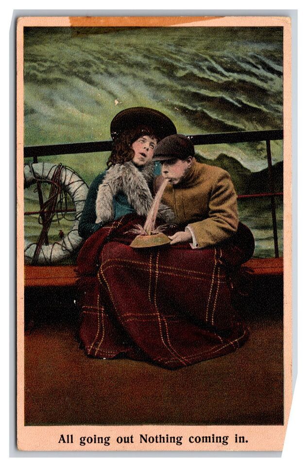 Steamship Comic All Going Out Nothing Coming In Seasick DB Postcard G19