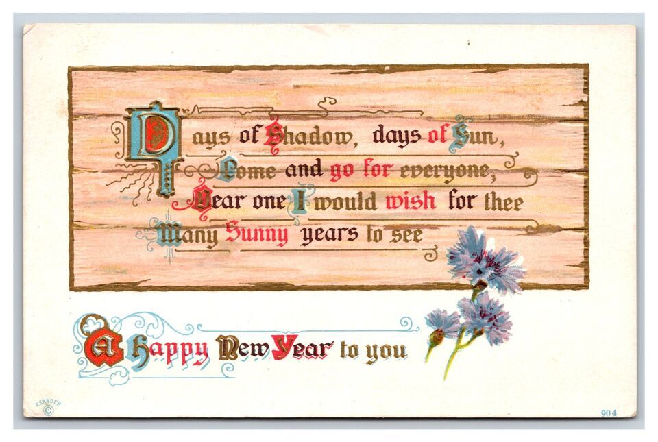 Poem on Wood Plank Happy New Year To You Embossed DB Postcard S6