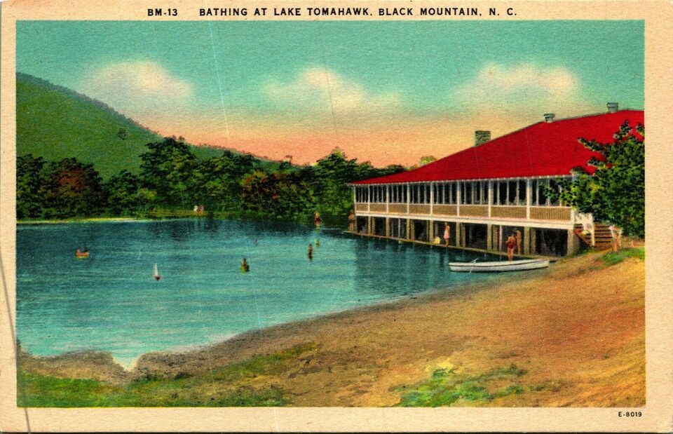 Bathing at Club House Lake Tomahawk Black Mountain NC UNP Linen Postcard B7