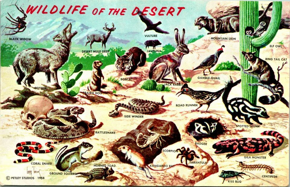 Vtg Chrome Postcard 1958 Wildlife fo the Desert Wildlife Petley Studios UNP