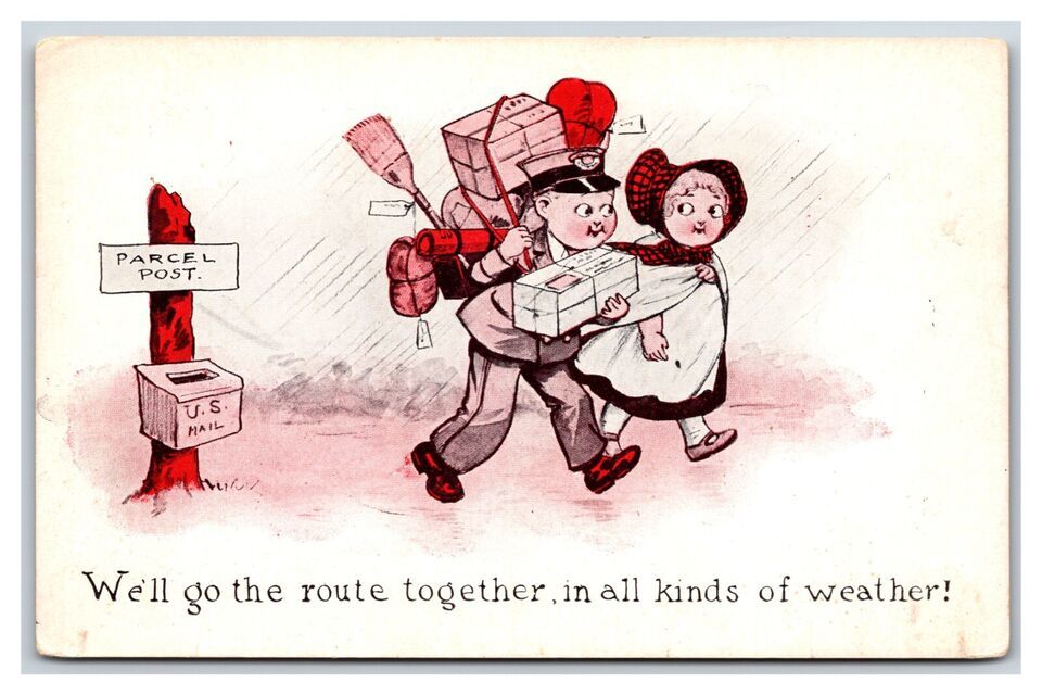Comic Postman Romance Go Together In All Kinds Of Wearther UNP DB Postcard S1