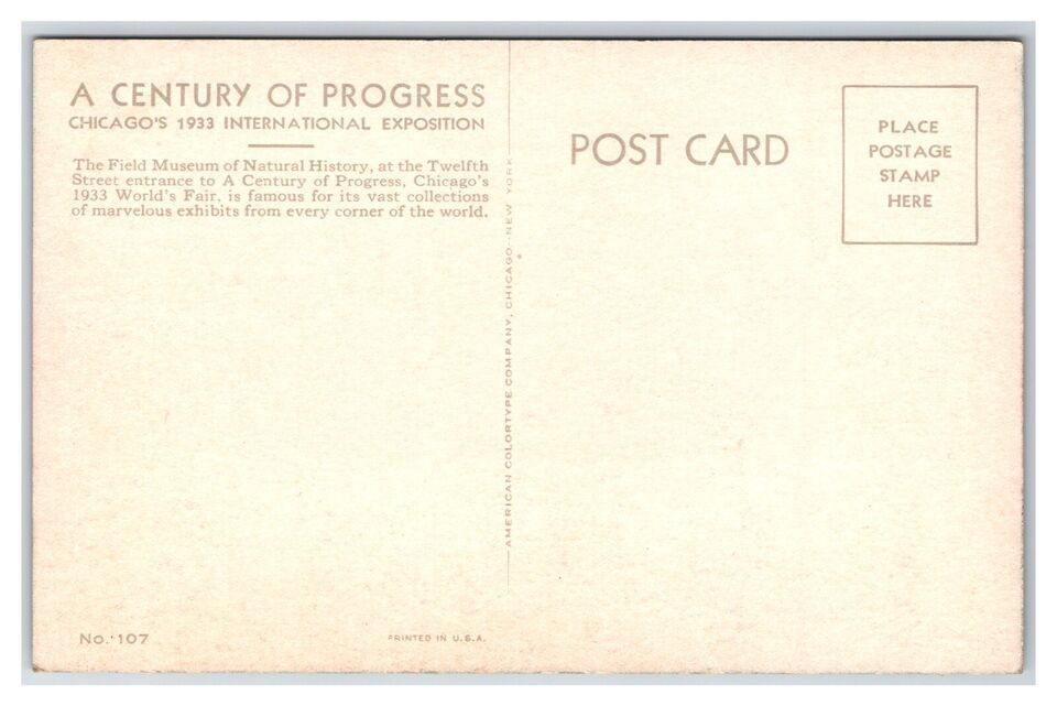 Field Museum of Natural History Century of Progress Chicago UNP DB Postcard G18