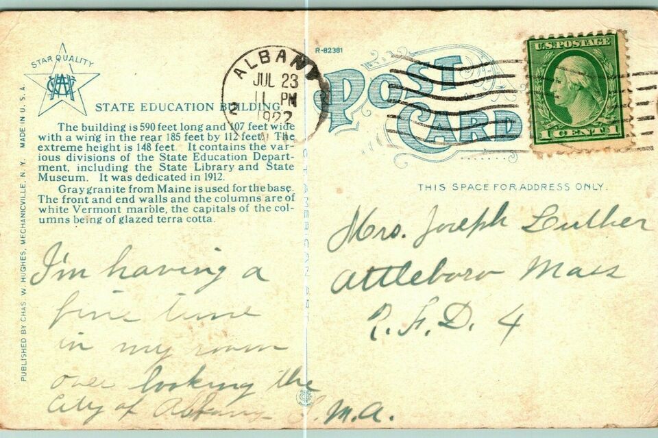 New York State Educational Building Albany New York NY UNP 1920s Postcard Unsued