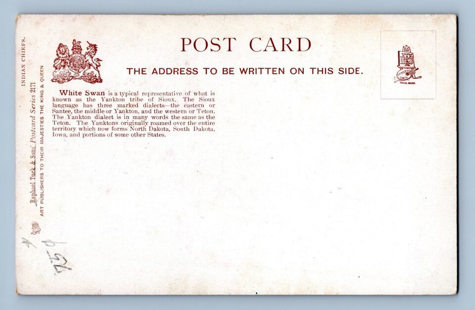 Chief White Swan Raphael Tuck 2171 Native American UNP DB Postcard N10