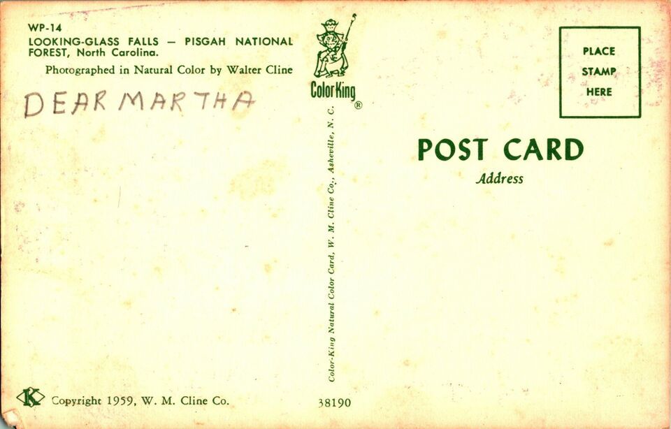 Pisgah National Forest North Carolina NC Looking Glass Falls Vtg Chrome Postcard