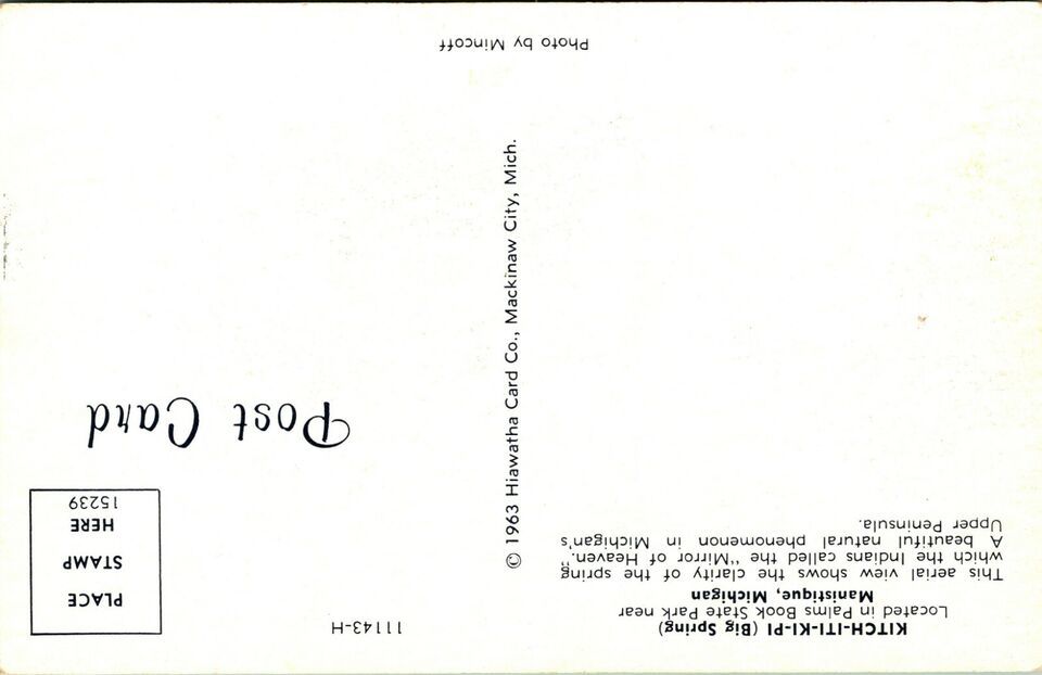 Aerial Kitchi-ti-ki-pi Springs Observation Raft Michigan MI UNP Chrome Postcard