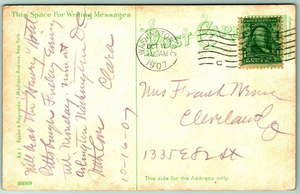 Normal wear associated with an old postcard it might have creases, a corner bump, ink on the front, etc.