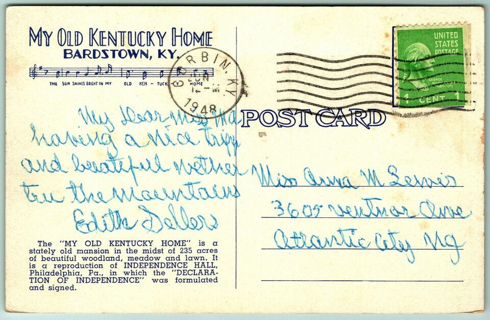 100 Year Old Cabin My Old Kentucky Home Bardstown Kentucky KY Linen Postcard I5