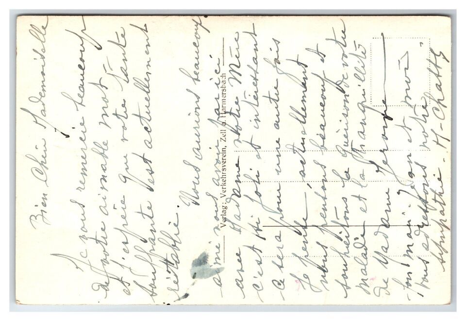 Normal wear associated with an old postcard it might have creases, a corner bump, ink on the front etc.