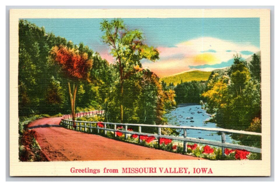 Generic Greetings Country Road Missouri Valley Iowa IA UNP Linen Postcard J20