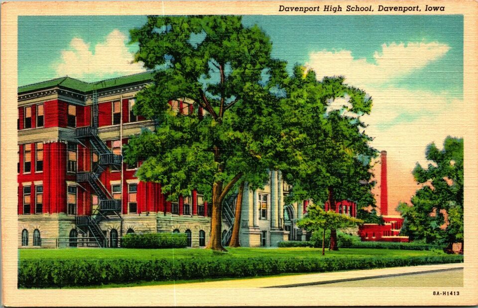 Davenport High School Building Davenport Iowa IA UNP Linen Postcard
