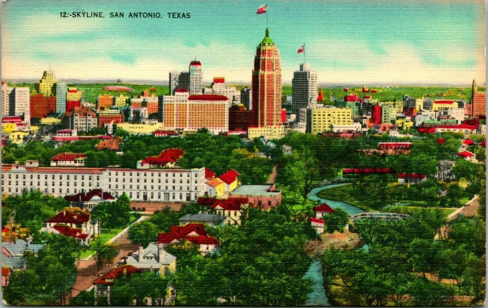 Vtg Linen Postcard San Antonio Texas TX Skyline Bird's Eye View Unused UNP