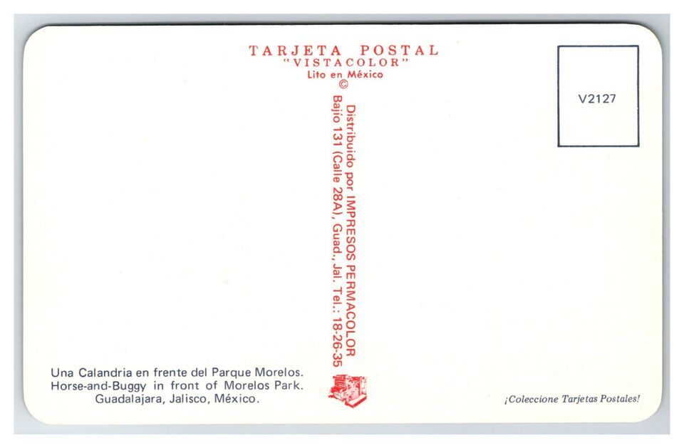 Horse and Buggy Morelos Park Guadalajara Jalisco Mexico Chrome Postcard W23