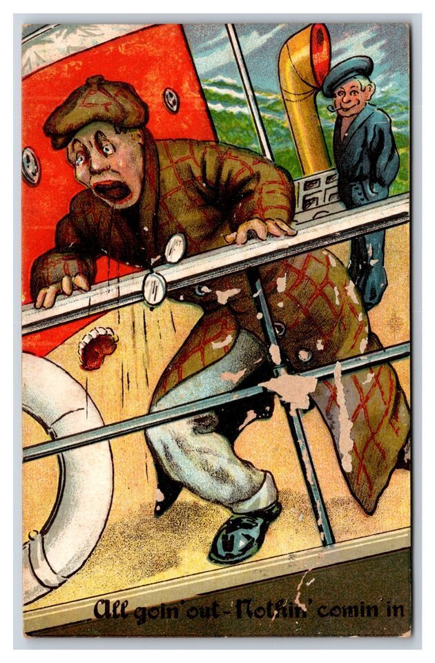 Steamship Comic All Going Out Nothing Coming In Seasick UNP DB Postcard R24