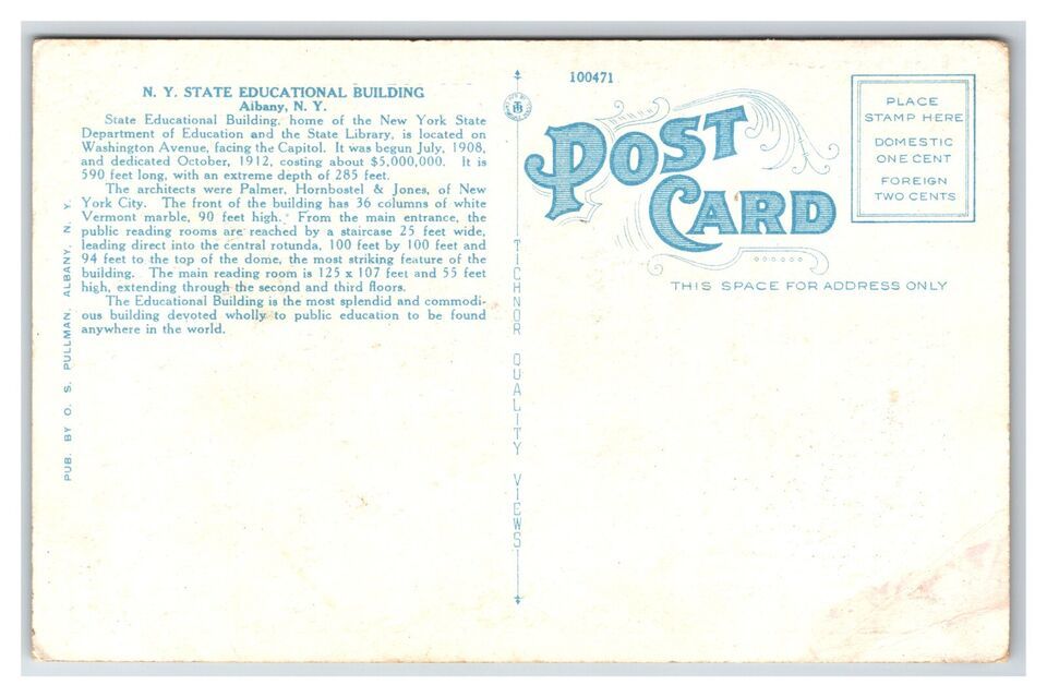 State Educational Building Albany New York NY UNP WB Postcard U2