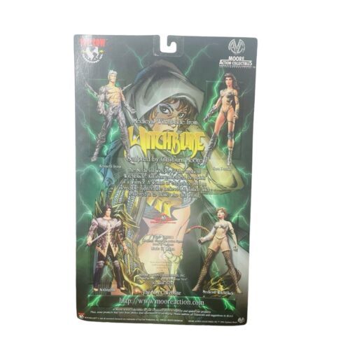 This collectible action figure is a vintage piece from 1998, featuring the character Witchblade from the comic book heroes franchise. The figure is made of ABS plastic and plastic materials and comes with a sword, shield, axe, and figure items. The featured person/artist is Clayburn Moore and the figure is an original, licensed reproduction.