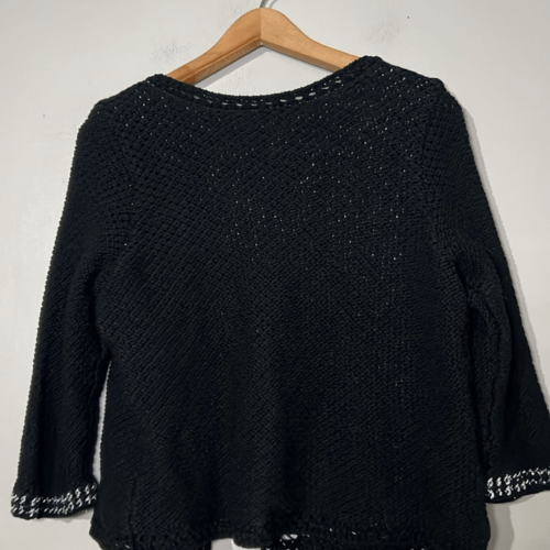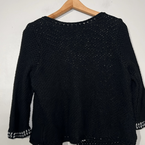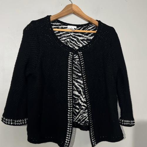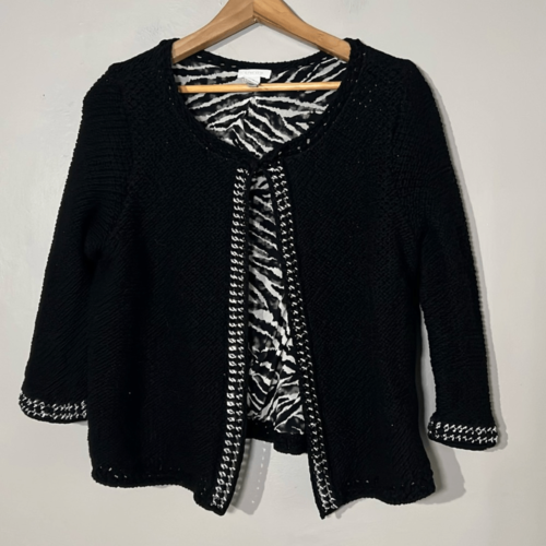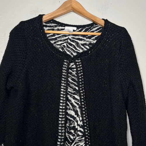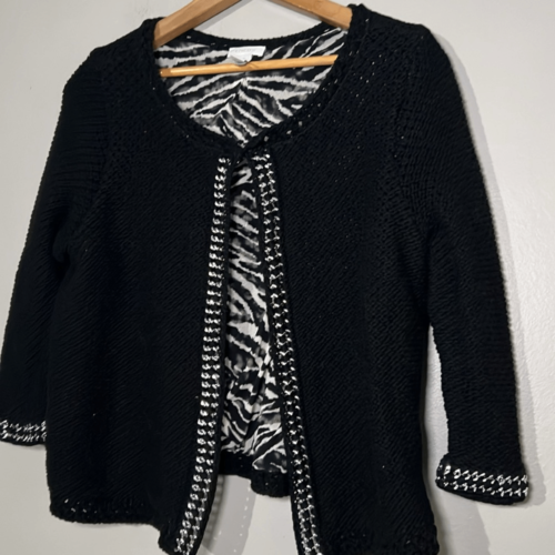 Chicos 2 Large Black Chunky Knit Cardigan with Silver Metal Embroidery