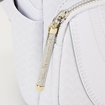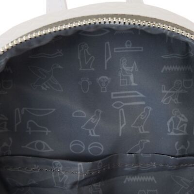 The C2E2 2024 Exclusive Loungefly Moon Knight Mr. Knight Mini Backpack is made of vegan Saffiano leather (polyurethane). Additional features include applique, embossed, debossed, light-up, and printed details. Take note of the coordinating inside lining.