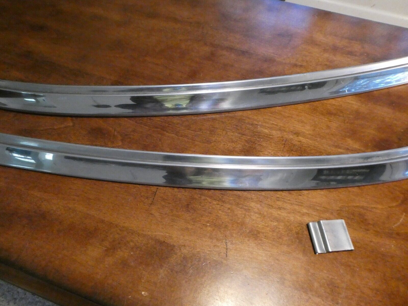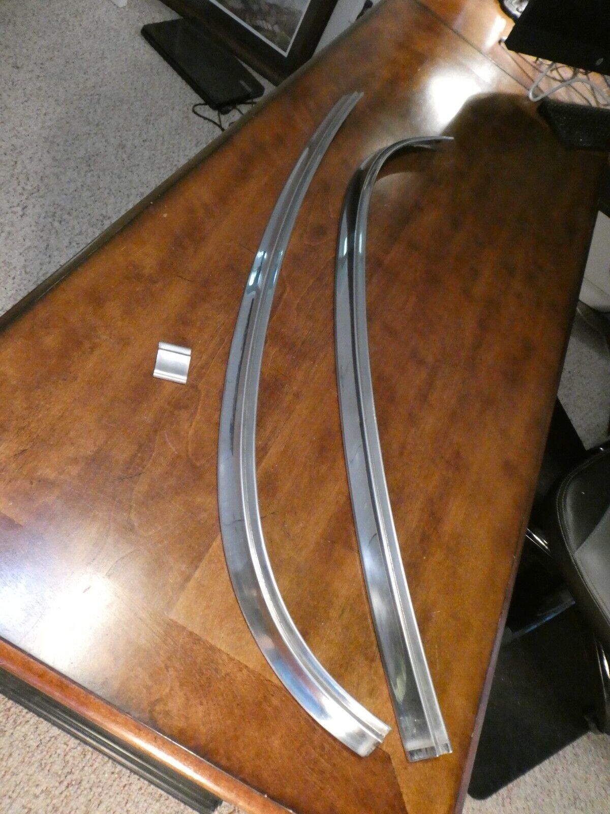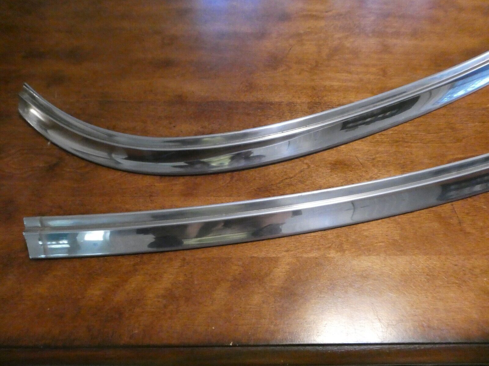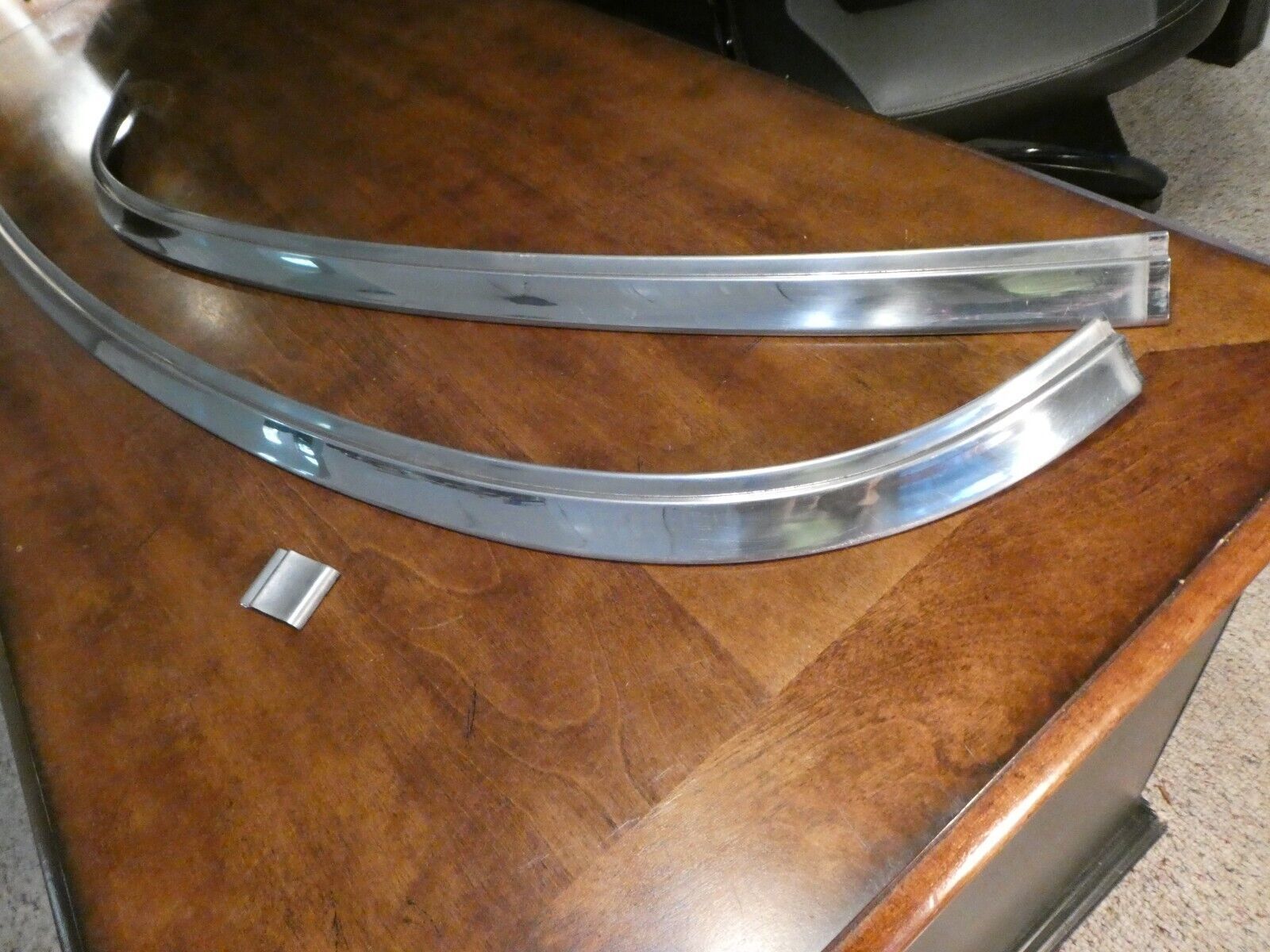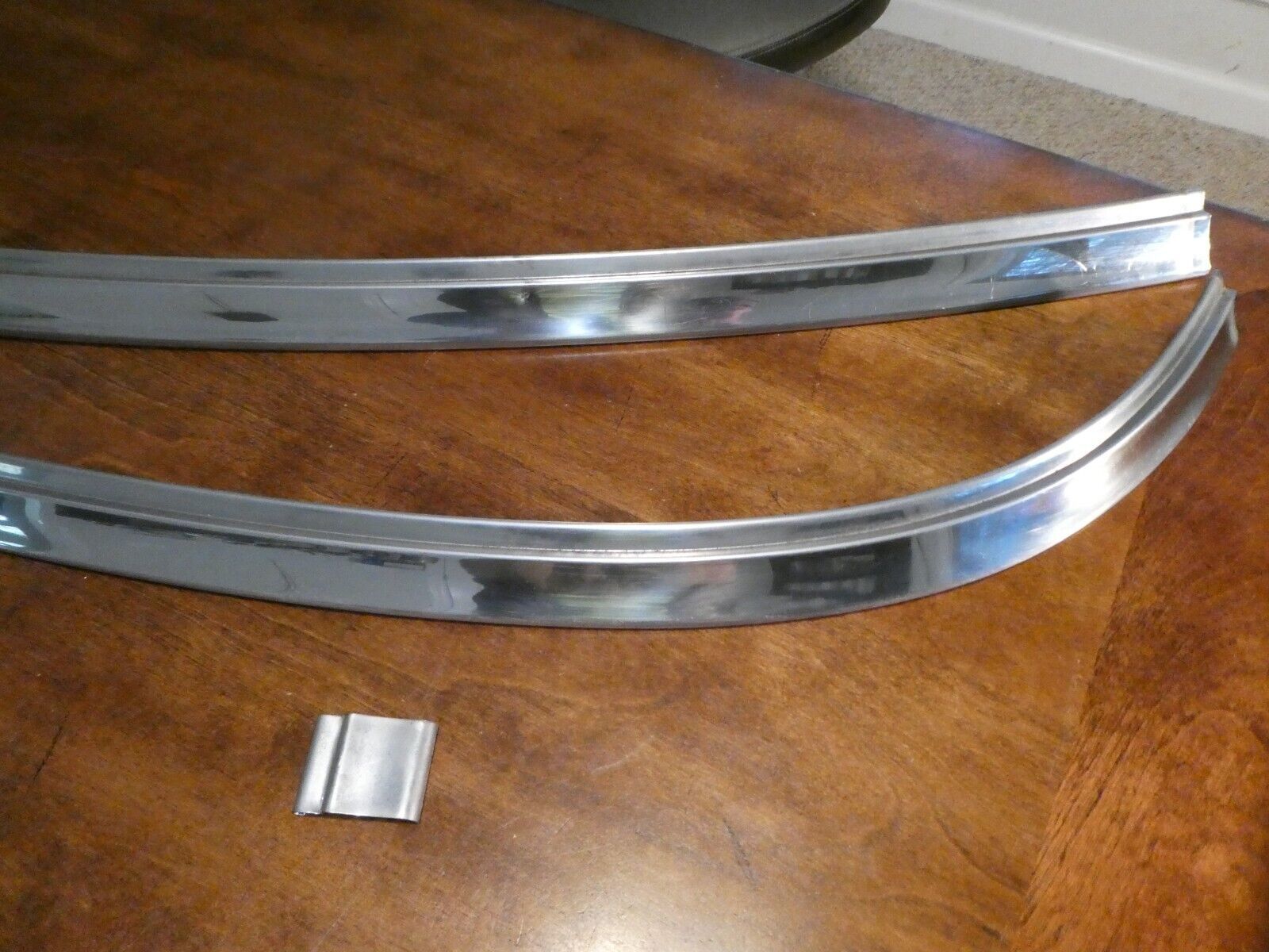 1955-1956 Chrysler Imperial Front Exterior Upper Windshield Trim in good condition. This is the trim that attaches below the top Sunvisor molding. Original Mopar trim was removed from a 56' Chrysler Imperial 4 Dr. Sedan that will fit all 55? - 56' Chrysler / Imperial / Desoto body styles and models. Includes center joint trim. One small ding that's not visible in pictures. Items I sell May have minor scratches / scuffs / dings / dents / cracks / rust or paint loss !!!!