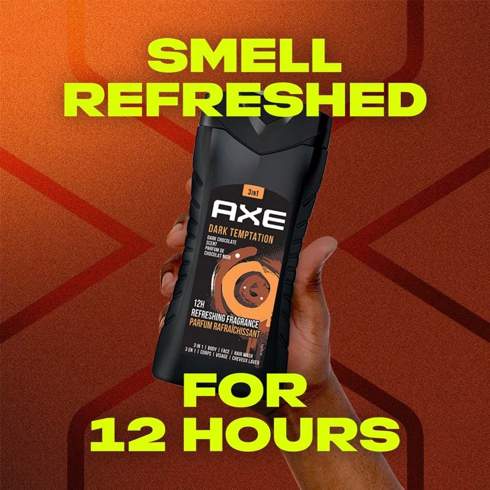 axe dark temptation 3 in 1 body, face & hair wash for men, refreshing shower gel
