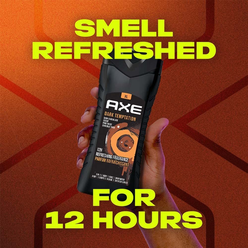 axe dark temptation 3 in 1 body, face & hair wash for men, refreshing shower gel