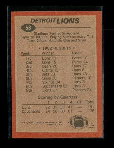 Vintage 1983 TOPPS TEAM LEADERS Football Card #58 BILLY SIMS Detroit Lions