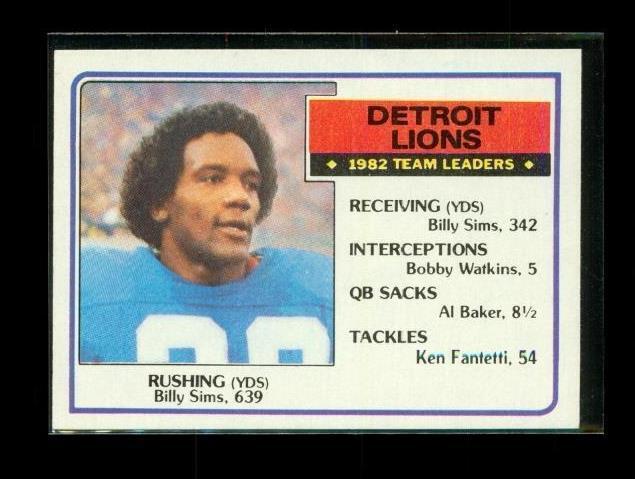 Vintage 1983 TOPPS TEAM LEADERS Football Trading Card #58 BILLY SIMS Detroit Lions