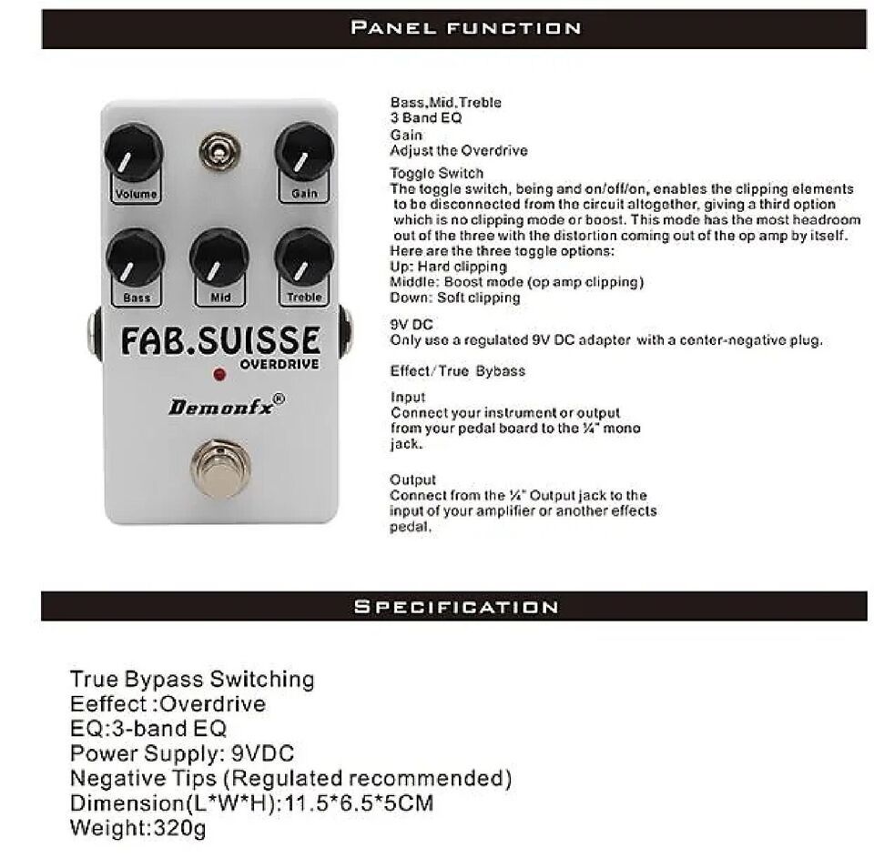 Demonfx High Quality FAB SUISSE Overdrive Gate Pedal Guitar Effect Pedal Overdrive Pedal + PDC 3A Power Split Cable