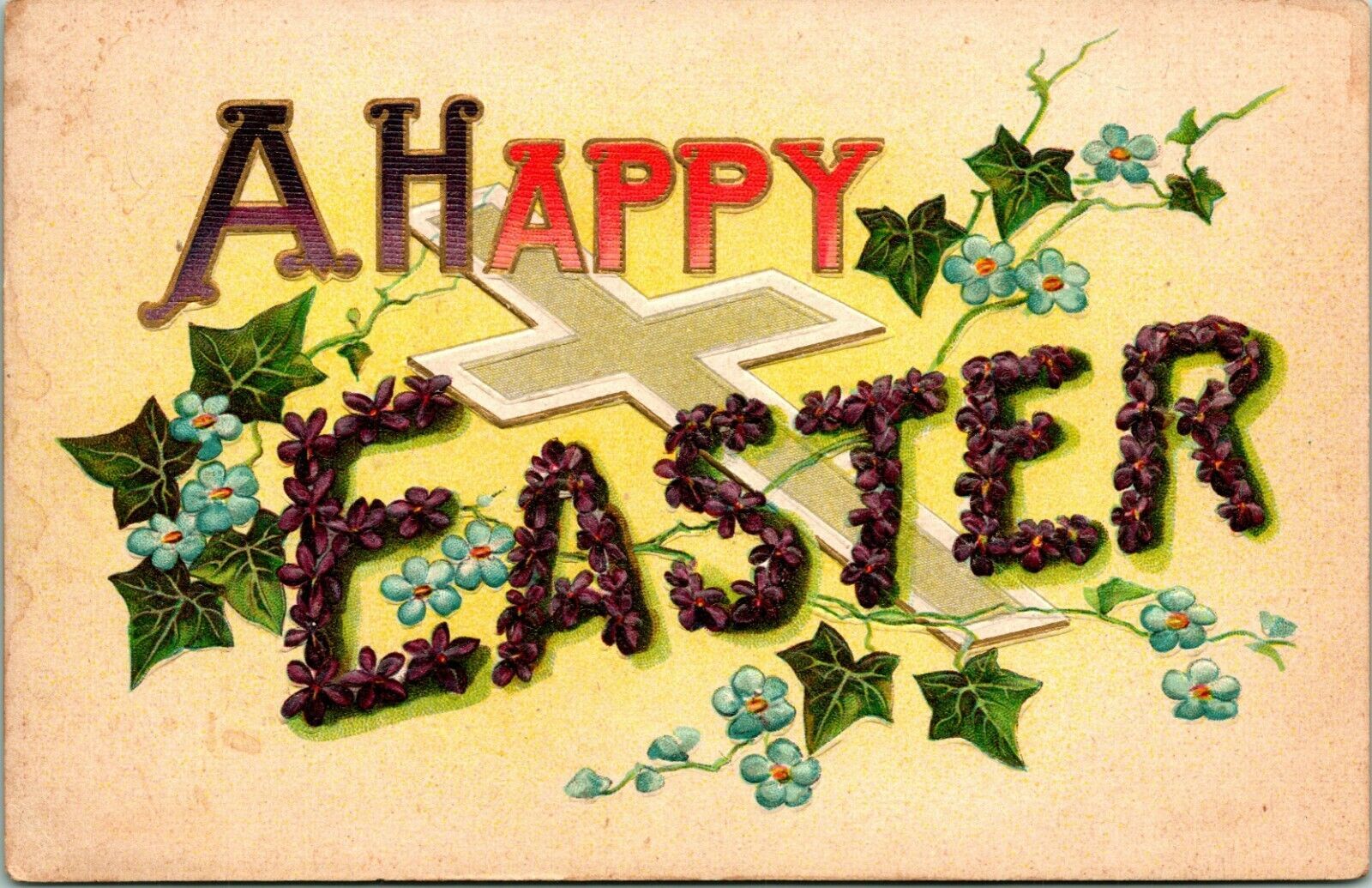 Large Letter Greetings Embossed A Happy Easter UNP DB Postcard M21