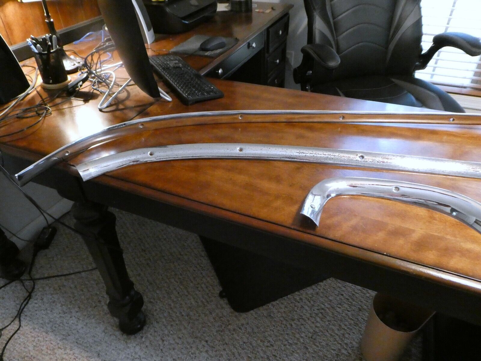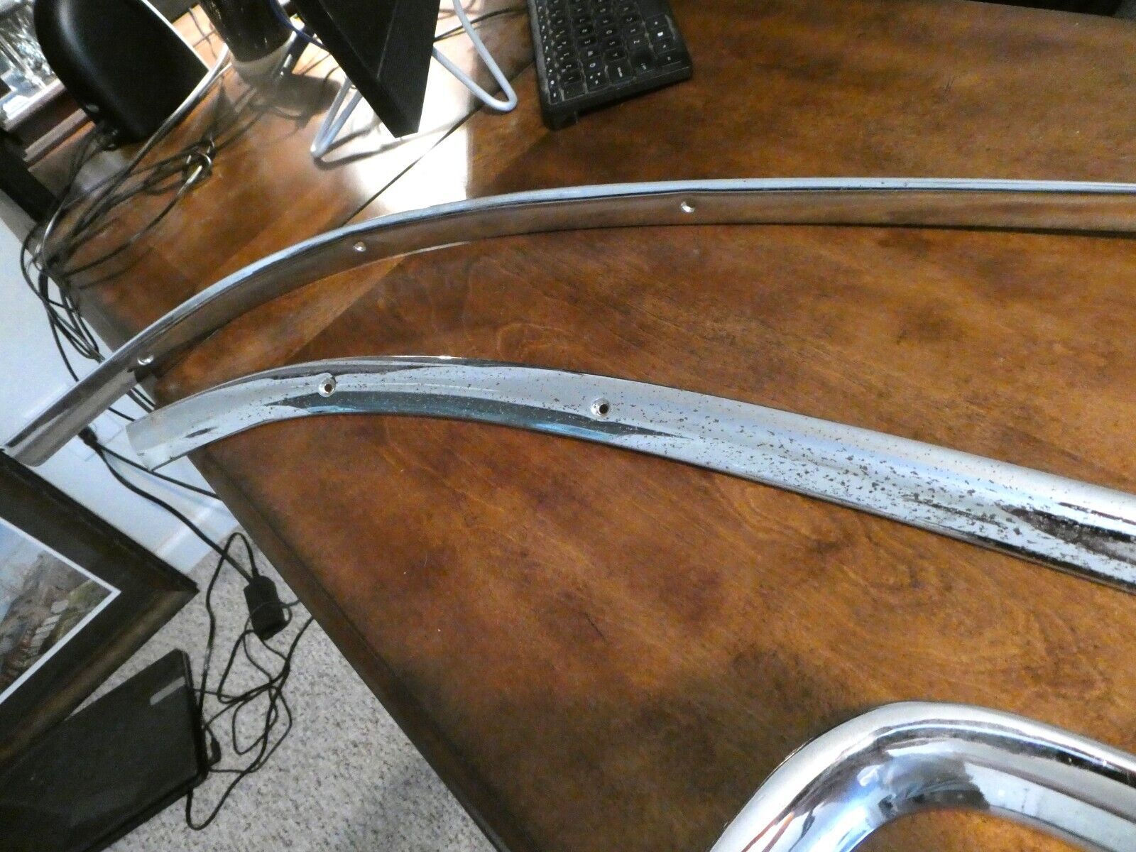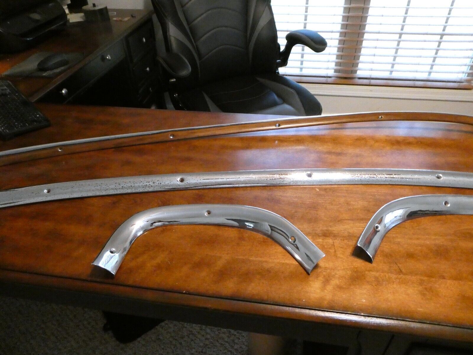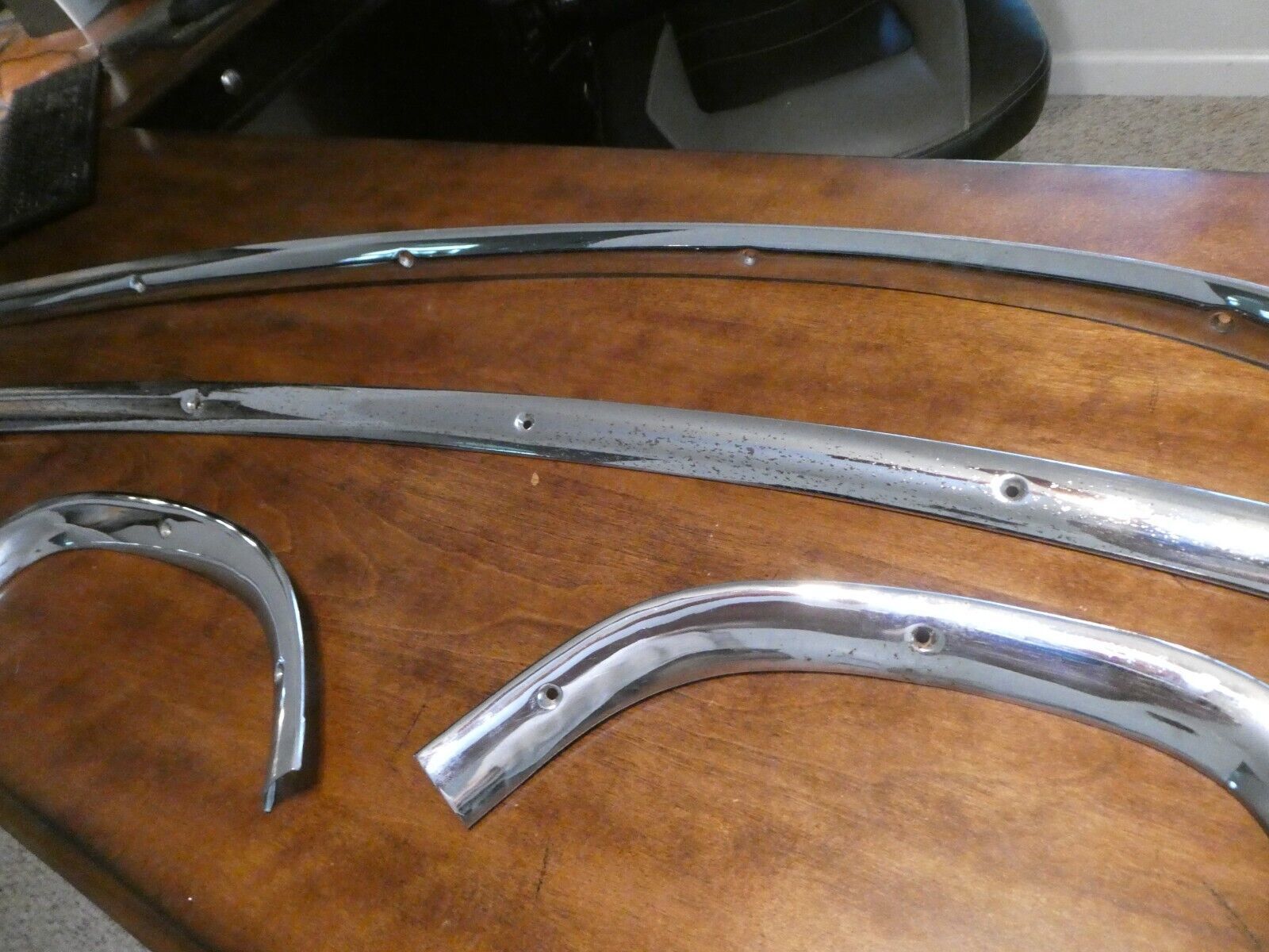 Full 4 piece set of 1955-1956 Chrysler Imperial Interior Rear Window Trim. Removed from a 1956 Chrysler Imperial 4 door sedan. NO dents, dings or damage. There is some pitting of the chrome as shown in pictures. Items I sell May have minor scratches / scuffs / dings / dents / cracks / rust or paint loss !!!!