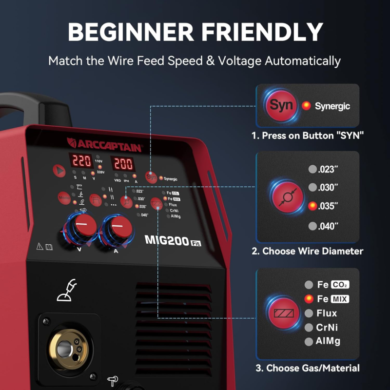 SYNERGIC MIG MANUAL MIG: Synergic control automatically match the recommend current and wire feeding speed when selecting the diameter of welding wire and gas material, also you can adjust the welding current according to your welding habit. Easy to work with beginner. Maunual MIG for better custom settings, suitable for professionals