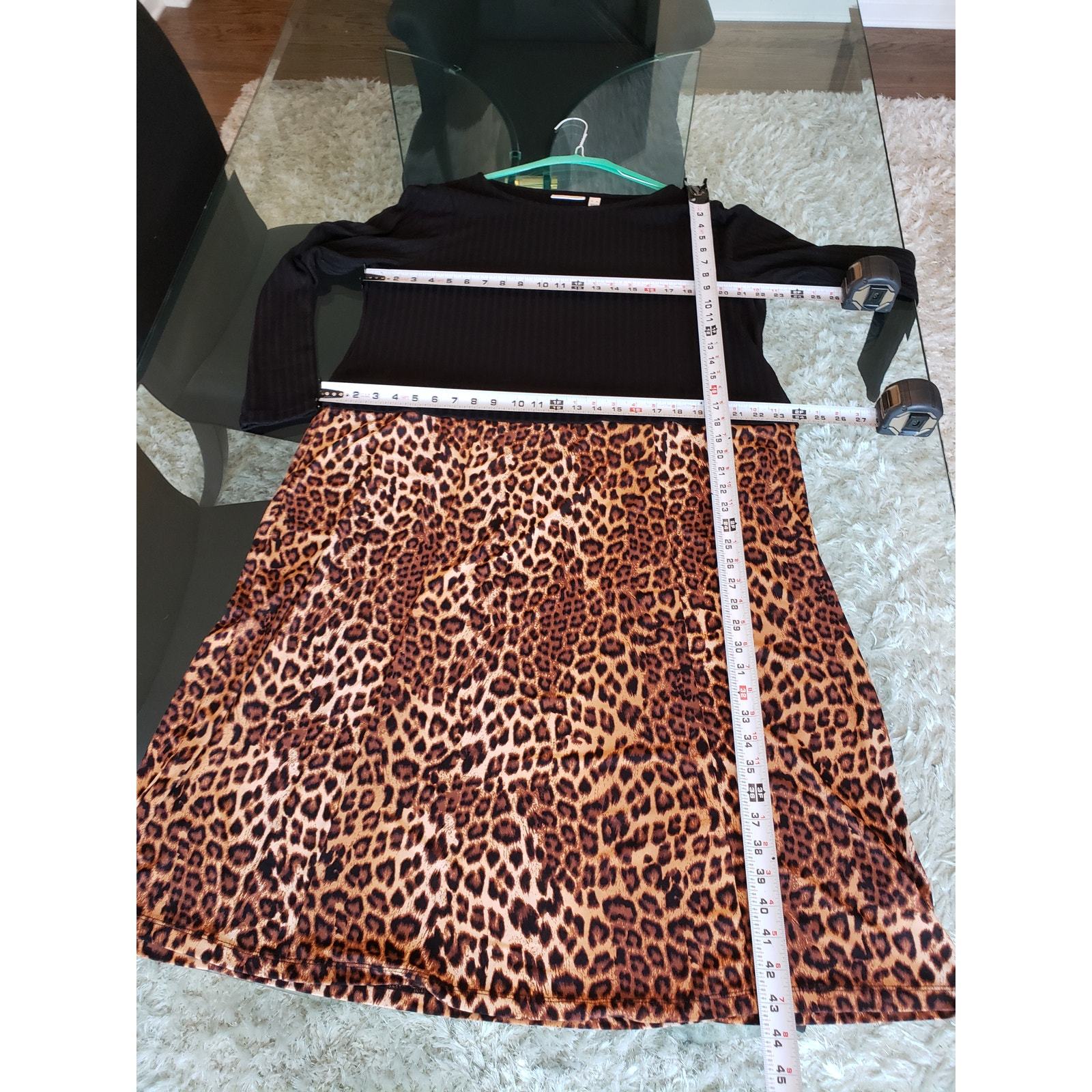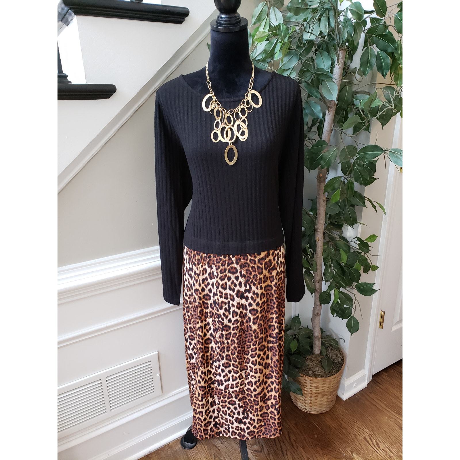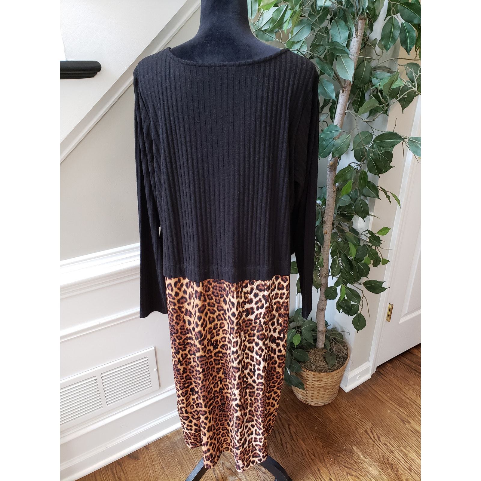 Susan Graver Sweater Dress Womens XL Multi Leopard Ribbed Long Sleeve Round Neck