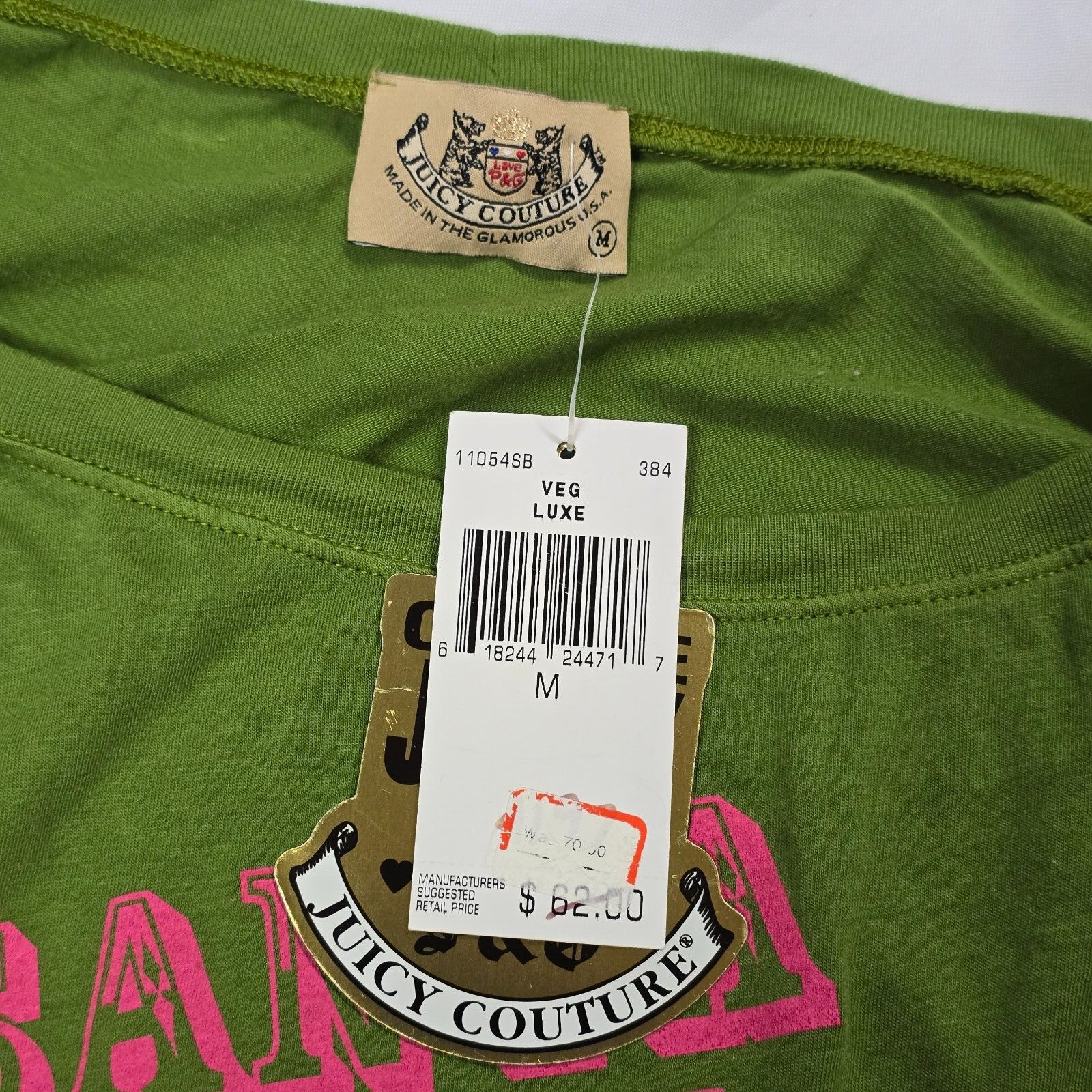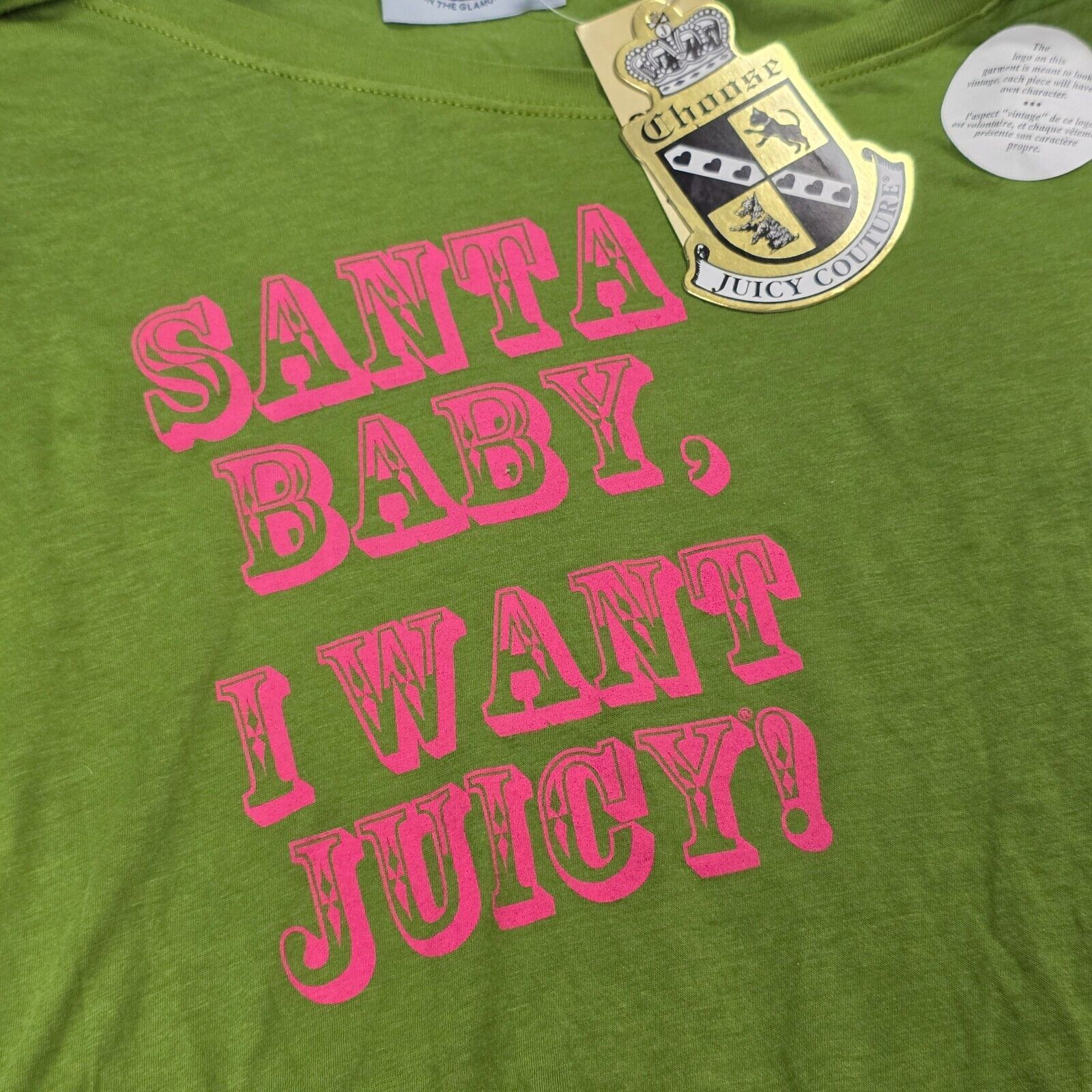 NWT Y2K Vintage RARE Green Graphic Long Sleeve Tee SANTA BABY, I WANT JUICY M