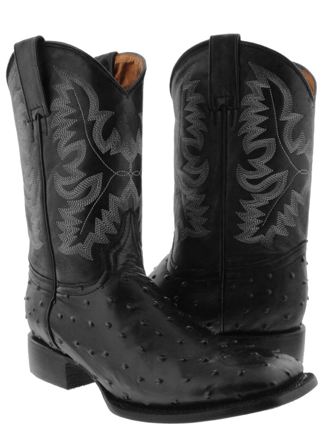 Mens Cowboy Boots Rodeo Dress Black Ostrich Print Square Botas Hombre 12.5, 13.5