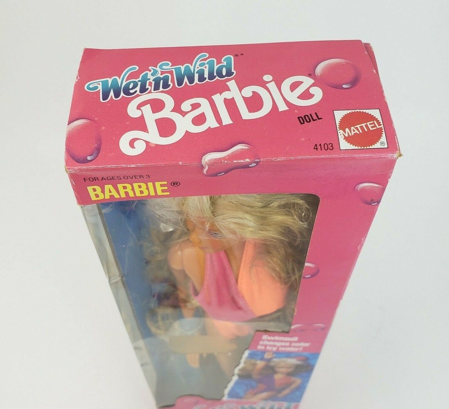 VINTAGE 1989 MATTEL BARBIE WET N WILD DOLL 4103 COLOR CHANGING SWIM SUIT TOY BOX