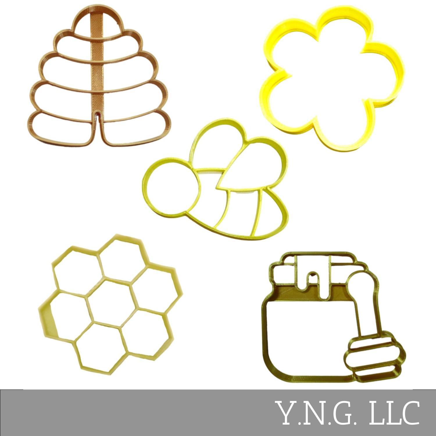 Honey Bee Hive Honeycomb Set Of 5 Cookie Cutters Made In USA PR1984