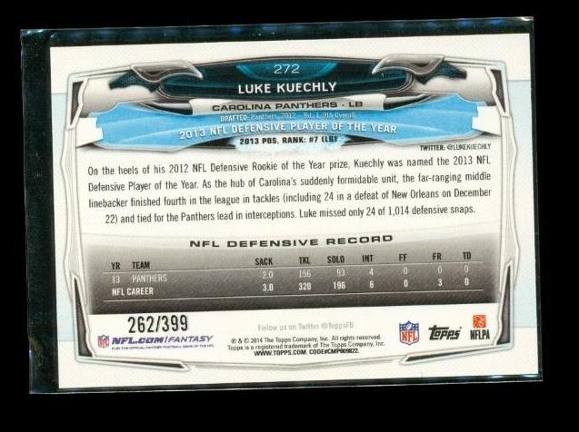 2014 Topps Camo Football Card Luke Kuechly 262/399 Carolina Panthers #272