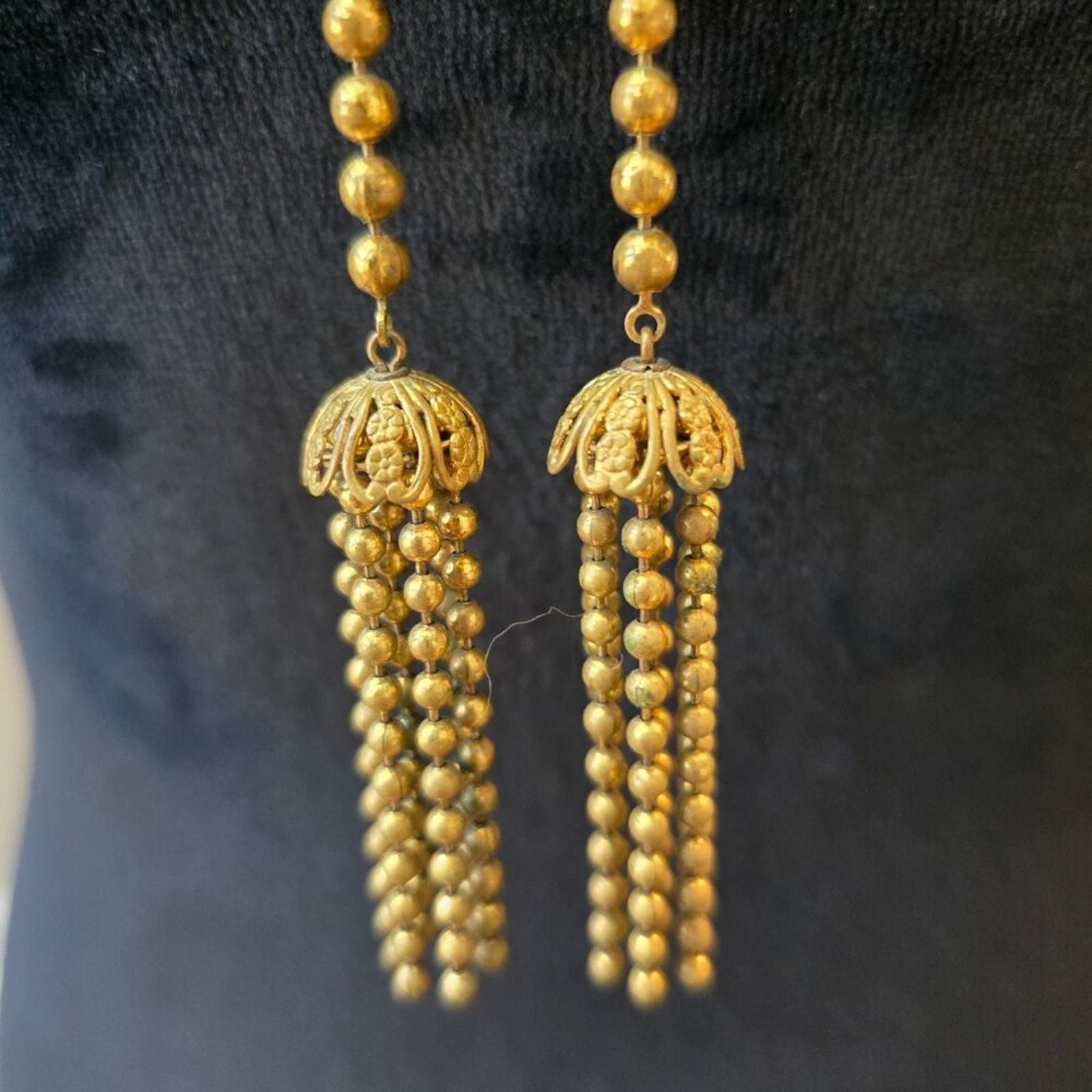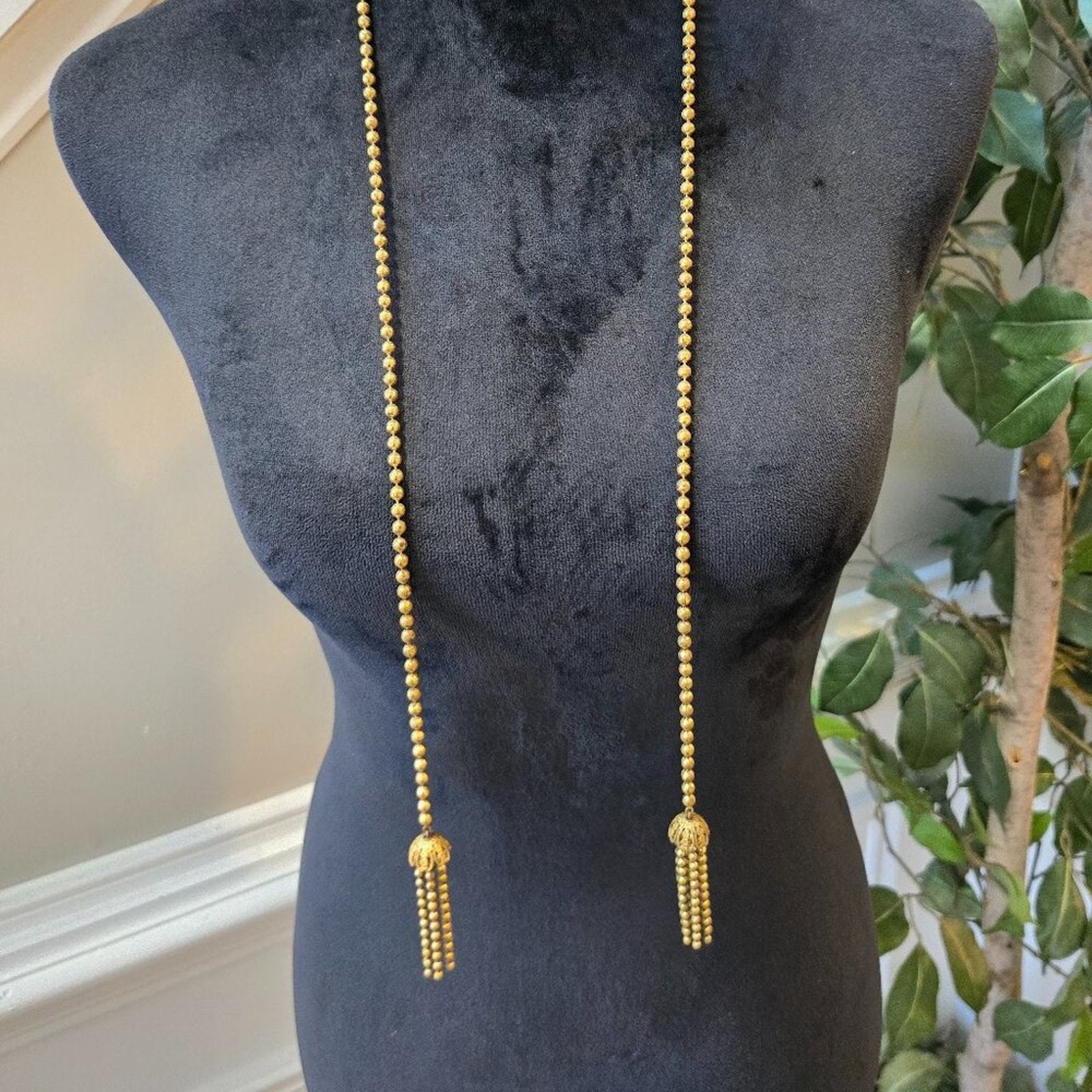 Womens Fashion Gold Tone Shiny Beaded Lariat Necklace Jewelry Tassels.
