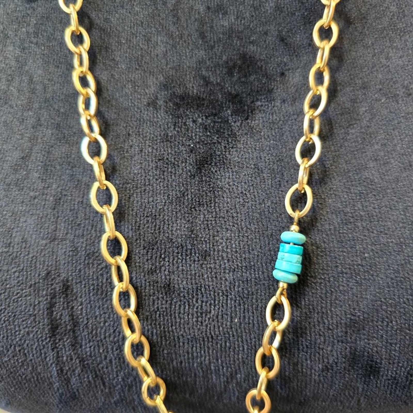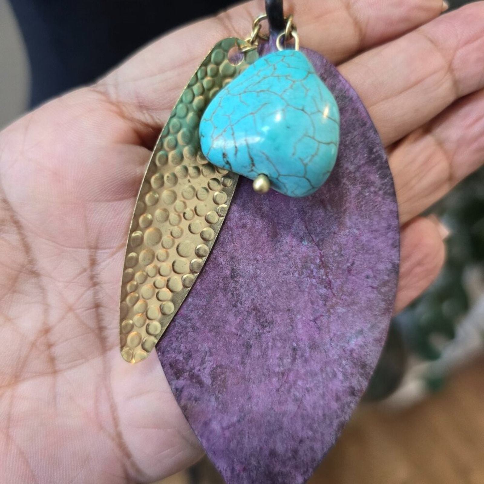 Chico's Green Turquoise Purple Opal Leaf Pendant Necklace w/ Lobster Clasp.