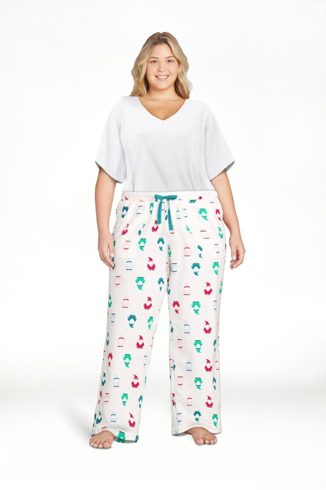 Joyspun Women?s Flannel Lounge Pants, Winter White Size 3X(22W-24W)