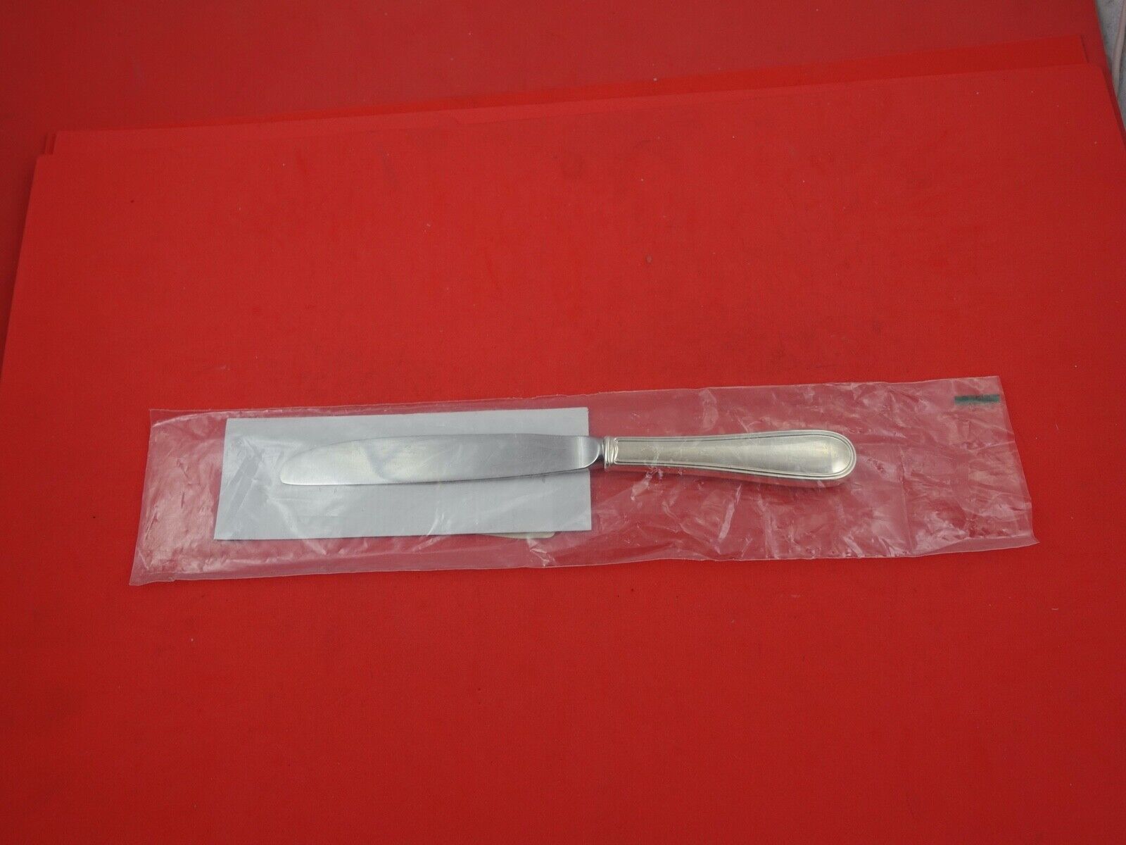 Colonial Thread by Blackinton sterling silver hollow handle with stainless blade Regular Knife, factory sealed 8 1/2". It is not monogrammed and is in excellent condition.