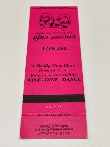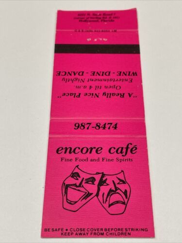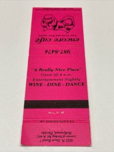 Matchbook Cover Encore Café Wine-Dine-Dance Hollywood, FL gmg Unstruck