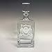 Furlong Irish coat of arms deluxe whiskey decanter with coat of arms - sand etched. Celebrate heritage and tradition with our stunning Whiskey Decanter adorned with your Irish Coat of Arms. This timeless piece adds elegance to any setting, making it a perfect gift for special occasions. Expertly crafted from durable, heavy liquor glass, it features a substantial 28.5 oz capacity and a sleek glass stopper lid. The intricate sand-etched design ensures lasting beauty, elevating your whiskey experience with sophistication and charm. Perfect for weddings, groomsmen, reunions, or any special occasion. Authentic Irish coats of arm with over 25 years of heraldry research. Heavy liquor glass decanter and glass stopper lid. Size - 9 1/4"(H) x 4 1/2"(L) x 2 1/2" (W). High quality permanent sand-etching and packaged in a sturdy black gift box with heavy EVA foam for protection.