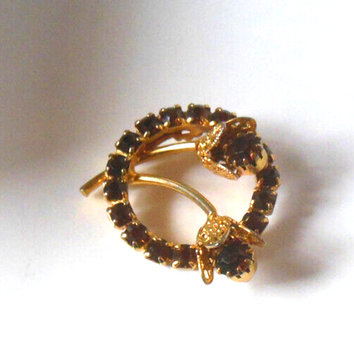 Vintage Gold-tone Amber Color Rhinestone Filigree Flower Brooch 1.1/4"