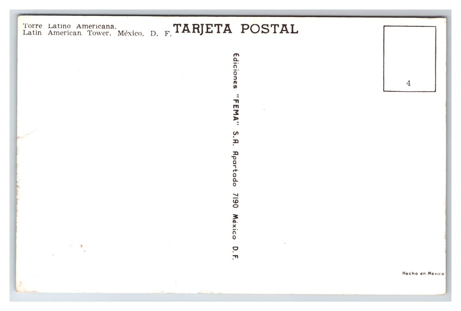 Mirador Torre Latino Mexico City Mexico UNP Chrome Postcard N28