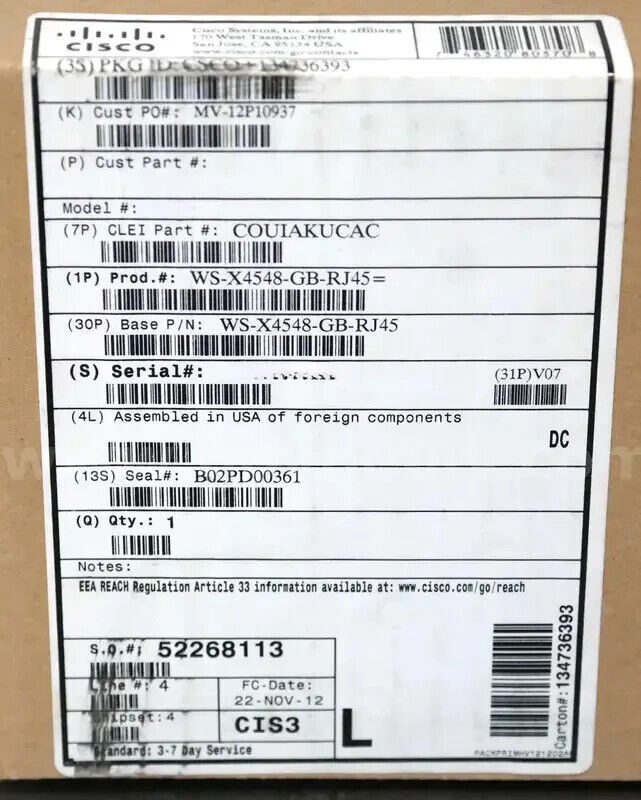 Engineered by Cisco, a trusted leader in network infrastructure, this switching module is an ideal choice for organizations seeking robust and scalable network solutions. With its model-specific MPN WS-X4548-GB-RJ45, compatibility and performance are assured, providing a sturdy foundation for your network's growth and development.