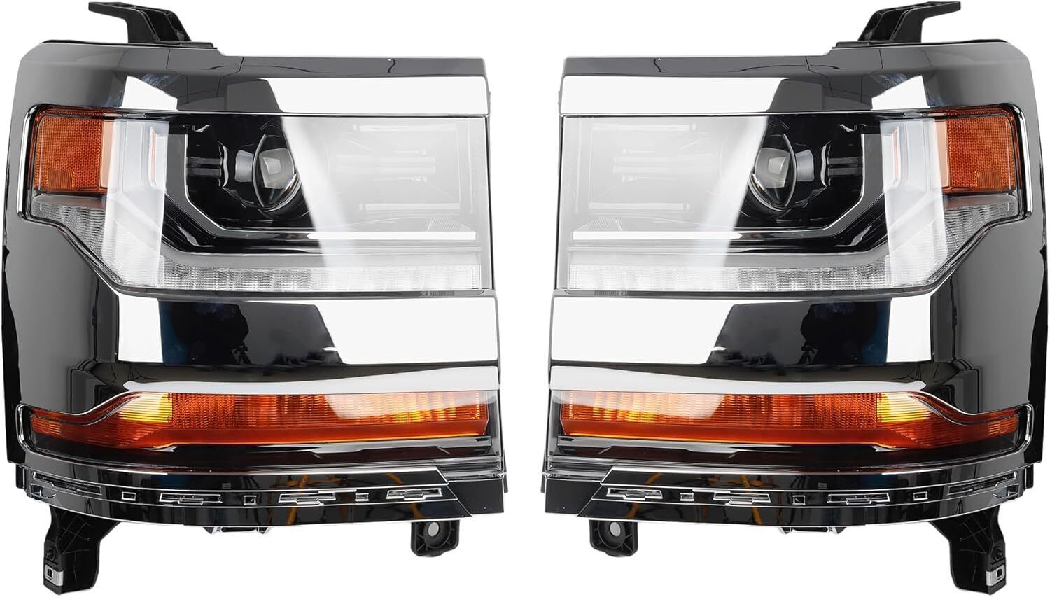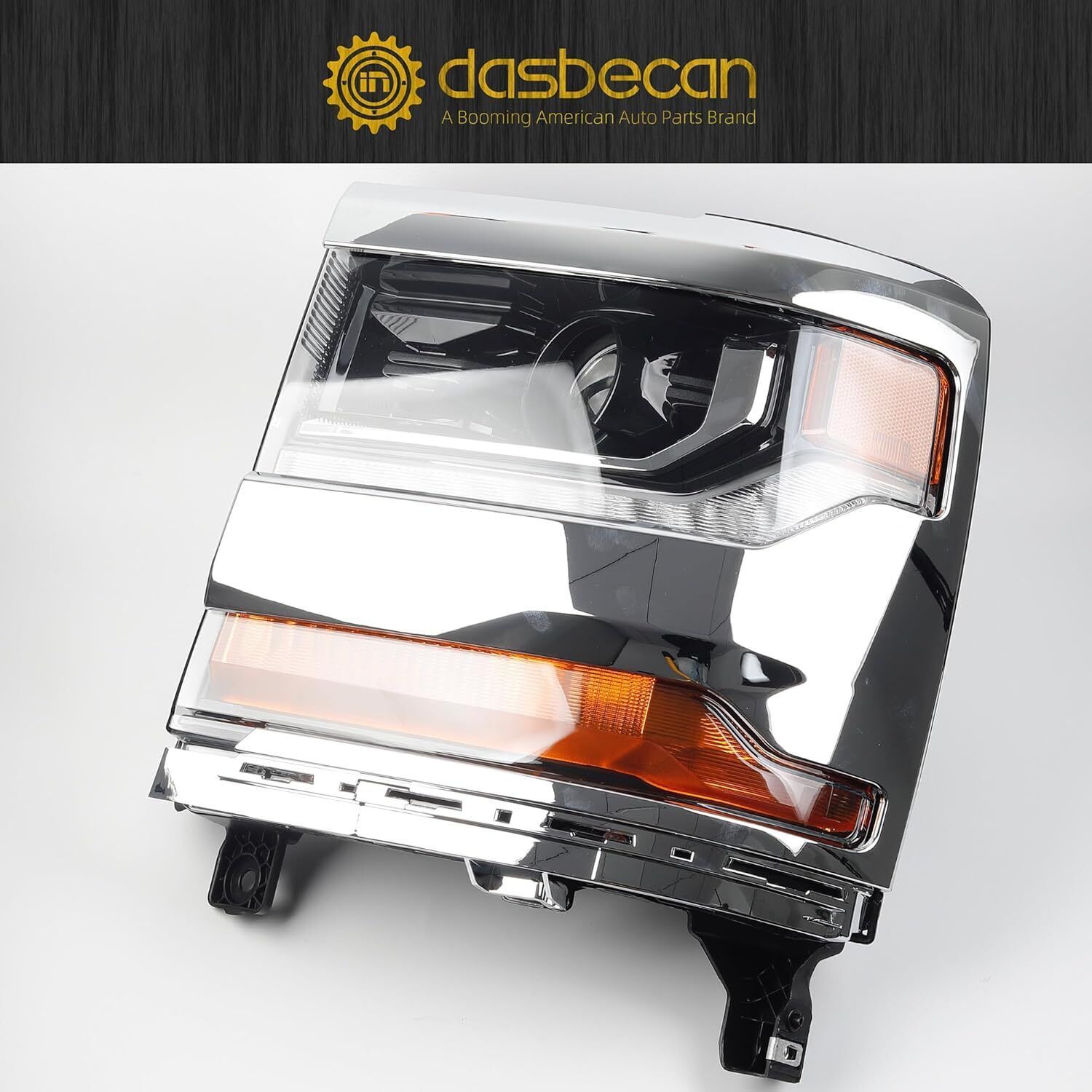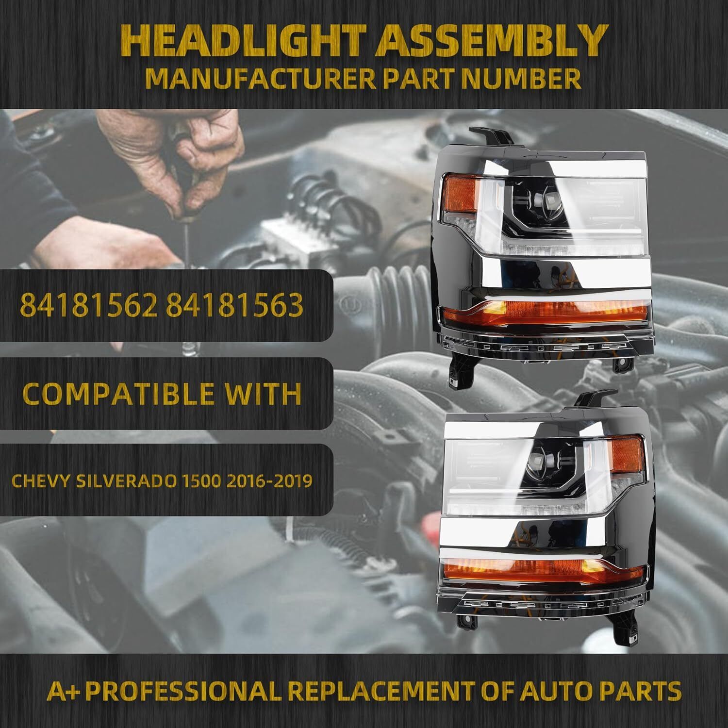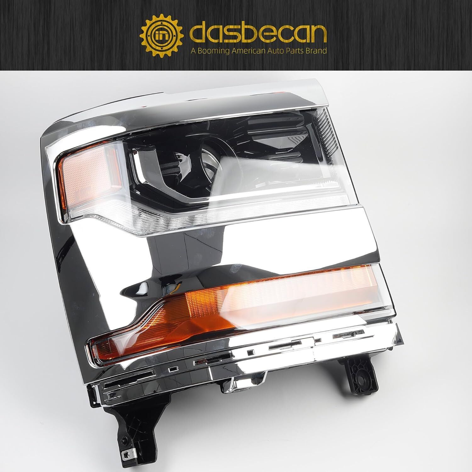 Dasbecan HID/Xenon Headlight Compatible with 2016-2018 Chevy Silverado 1500/2019 Chevy Silverado 1500 LD Left/Right Passenger Side Headlight Assembly Chrome Housing Replaces# 84181562 84181563