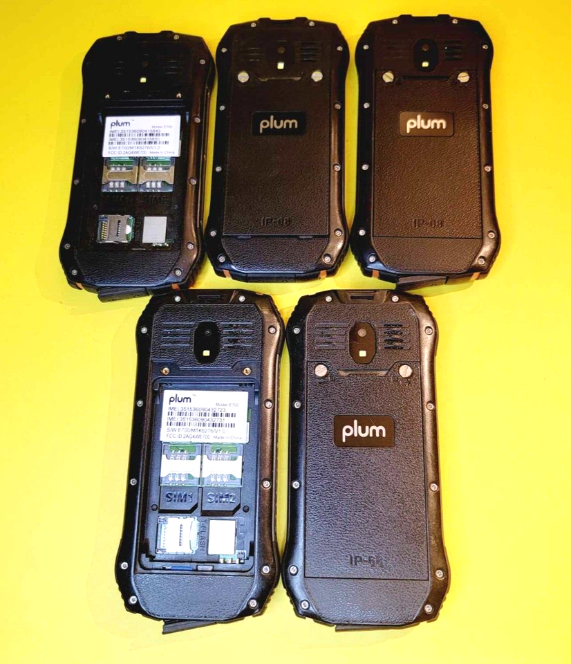 - *UNTESTED* LOT OF 5X PLUM RAM 7 E700 UNLOCKED RUGGED DUAL SIM 3G CELL PHONES!!! (Very