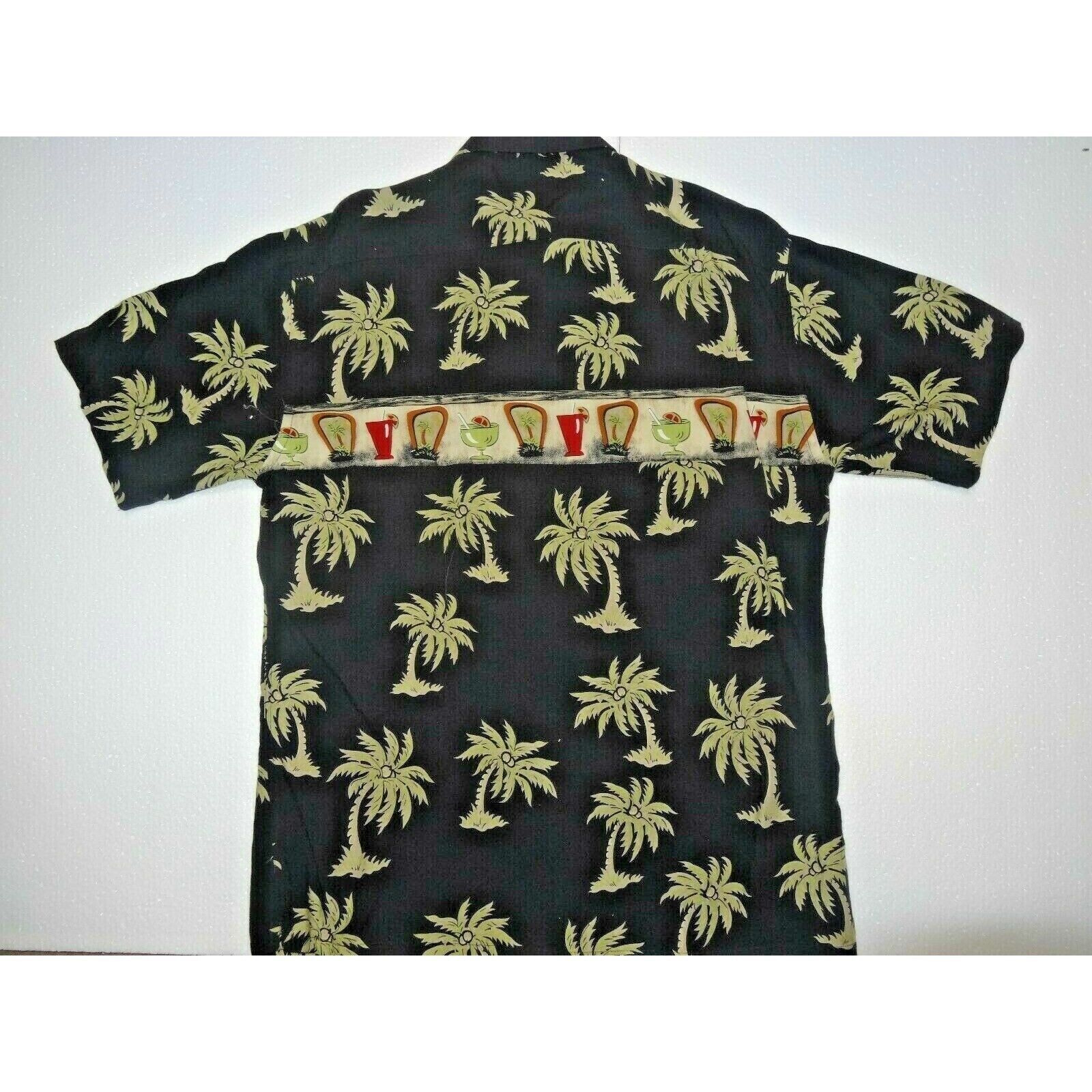 Pierre Cardin Men's Shirt Button Up Sz Med Palm Trees Tropical Drinks Black Tan