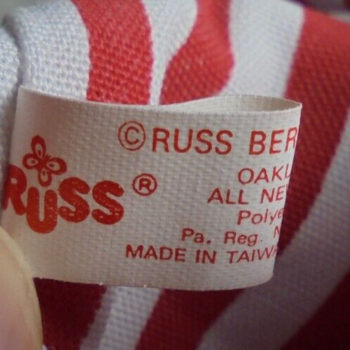 Russ Kids Childs Teddy Bear Christmas Stocking Red White Stripes Bear in Green Pouch